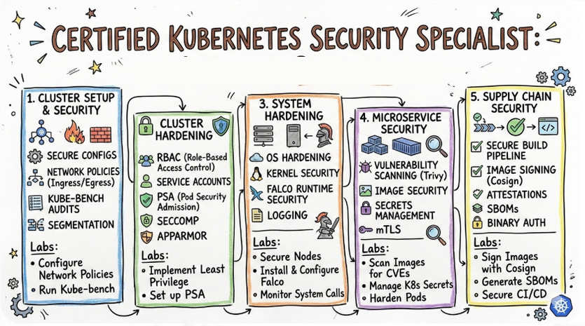 • 7–14 Days (The Specialist): For those who use Kubernetes daily. Focus on the delta between CKA and CKS, specifically third-party tools like Falco, Trivy, and kube-bench.