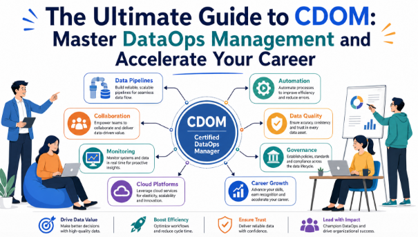 The CDOM โ Certified DataOps Manager is a professional designation that validates an individual’s ability to manage, automate, and optimize data pipelines using lean and agile methodologies. It exists to bridge the gap between data science, data engineering, and IT operations, ensuring that data is delivered with high quality and high velocity. Unlike generic management courses, this program emphasizes production-focused learning, where the focus is on reducing the cycle time of data analytics.